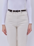 CLEO brązowy srebrne elementy pasek skórzany damski do spodni z klamrą