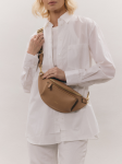 LARISSA beżowa latte skórzana duża damska nerka saszetka torebka