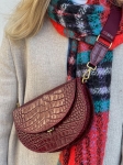 ROSALIE czerwona bordowa skórzana torebka damska półksiężyc